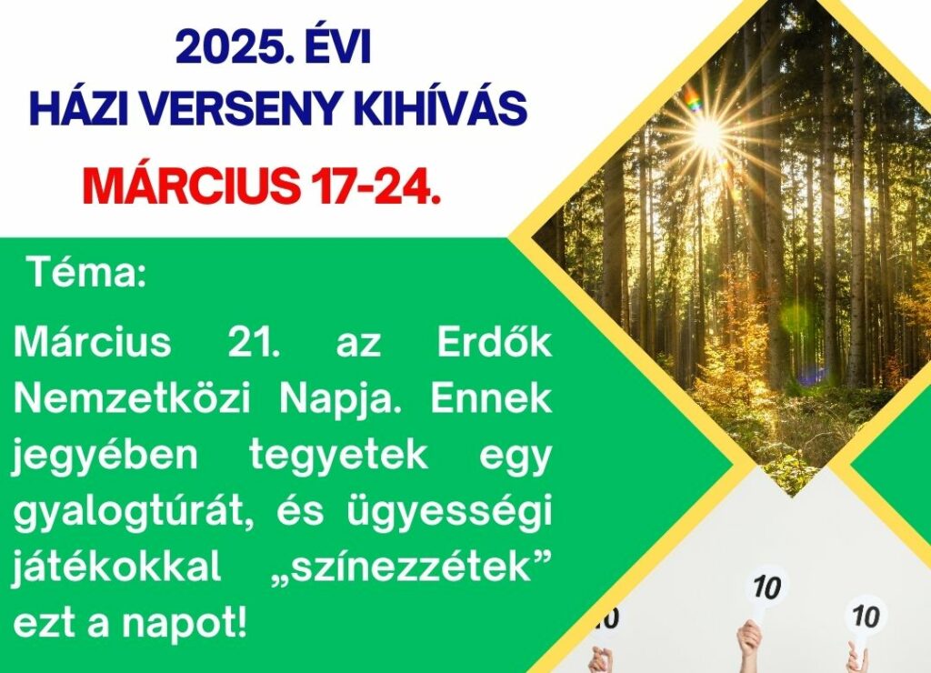 Március 21. az Erdők Nemzetközi Napja. Ennek jegyében tegyetek egy gyalogtúrát március 17 és 24 között, és ügyességi játékokkal…